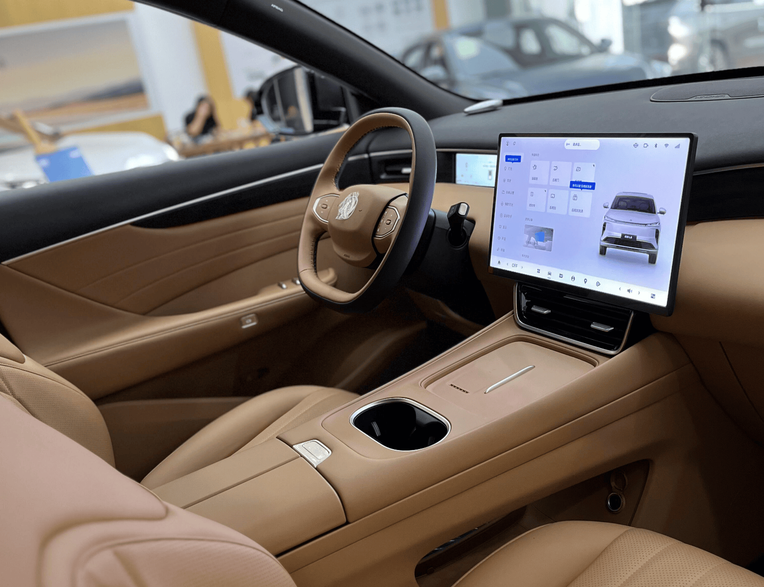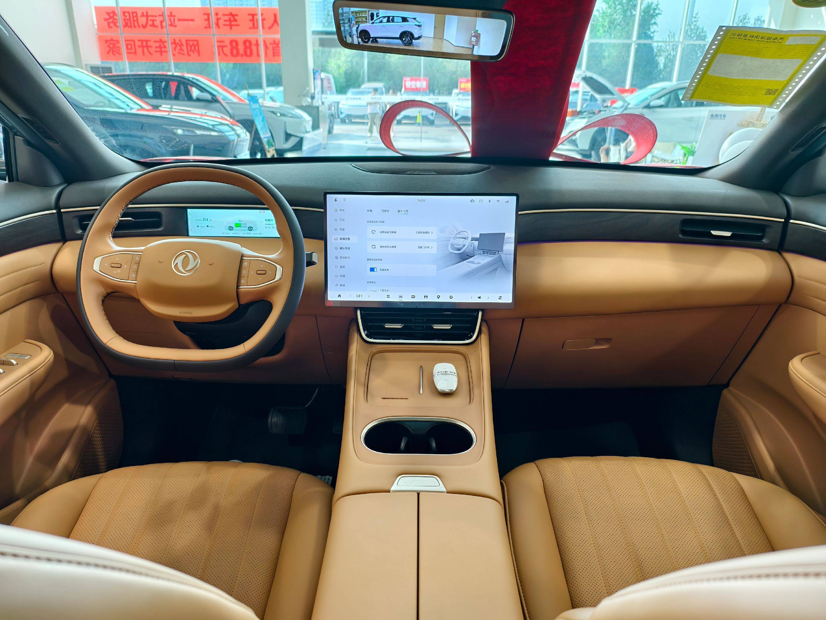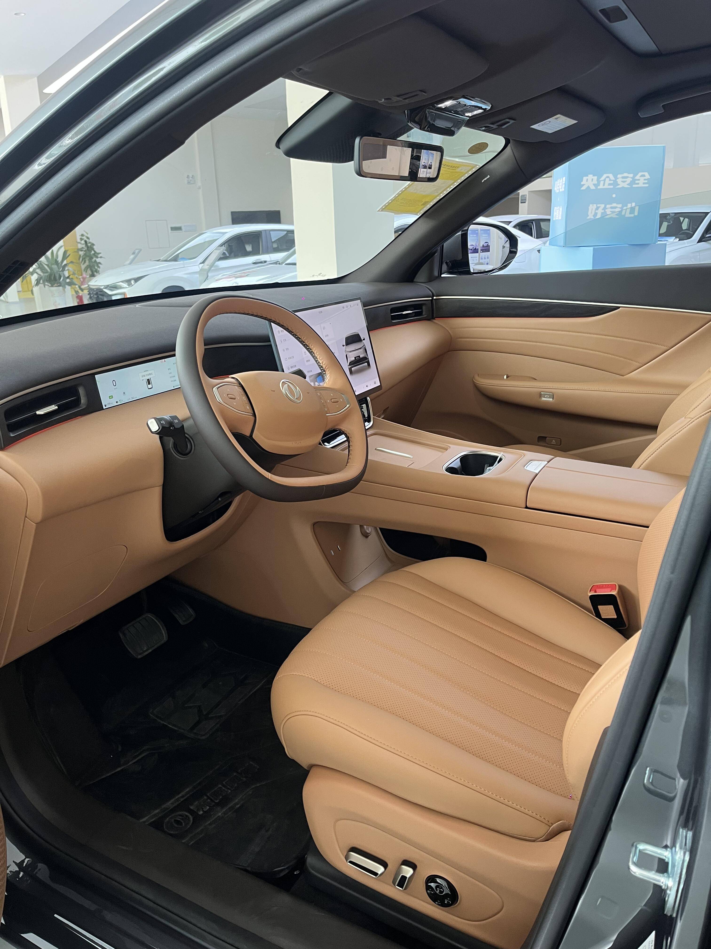 進(jìn)入車內(nèi),對稱設(shè)計的中控臺上配備15.6英寸懸浮式中控大屏,以及12.3英寸內(nèi)嵌式全液晶儀表屏,并搭載天元智艙,支持雙AI語音大模型。而黑/棕雙色風(fēng)格加入大量皮質(zhì)包覆,再配合木紋飾板點(diǎn)綴,以及環(huán)繞式氛圍燈,又營造出豪華氣息。此外諸如雙幅式多功能方向盤、電子懷擋、50W手機(jī)無線快充、流媒體后視鏡、撥桿式車窗按鍵+按鍵開門的加持,也進(jìn)一步提升了檔次感。